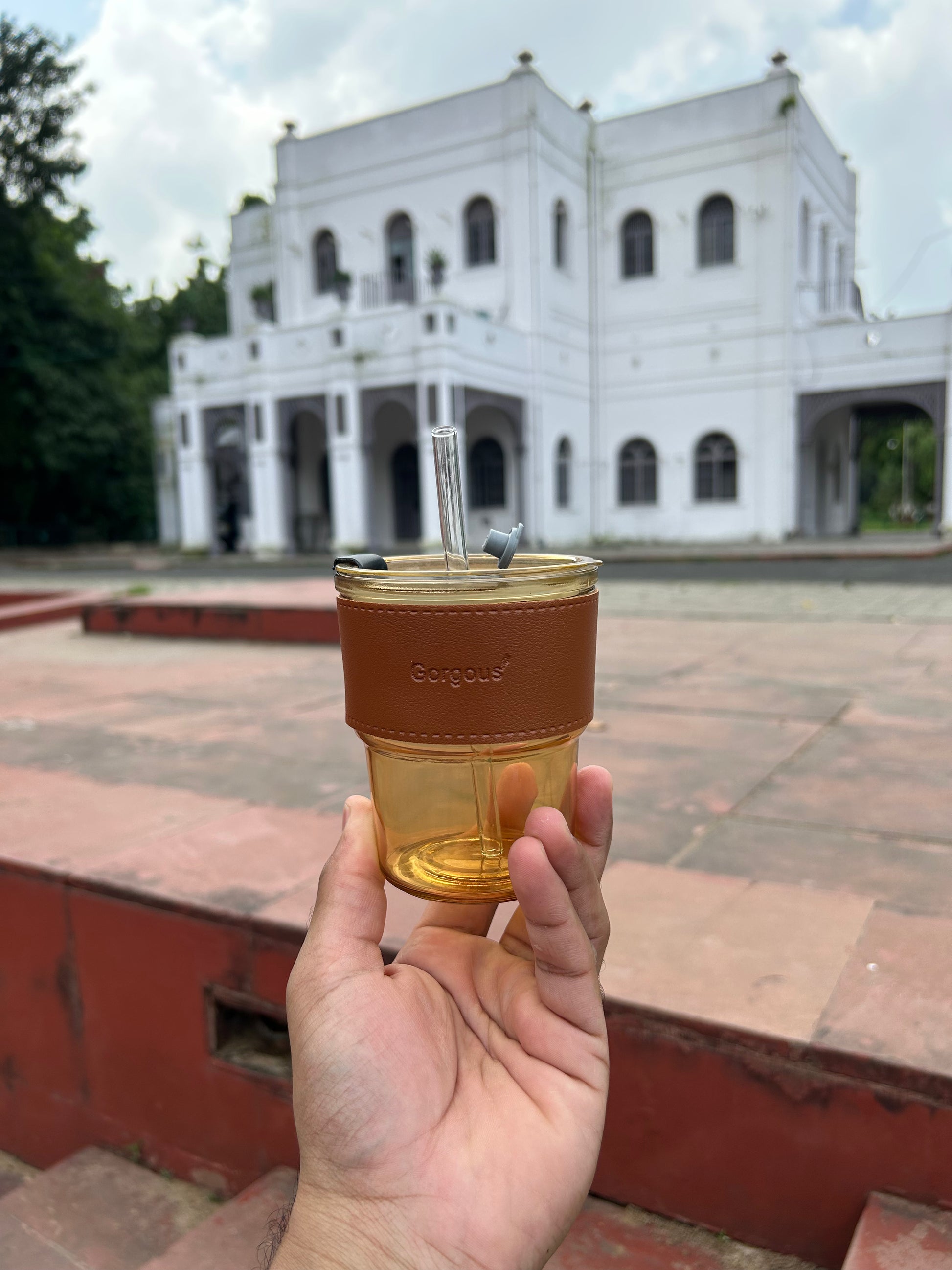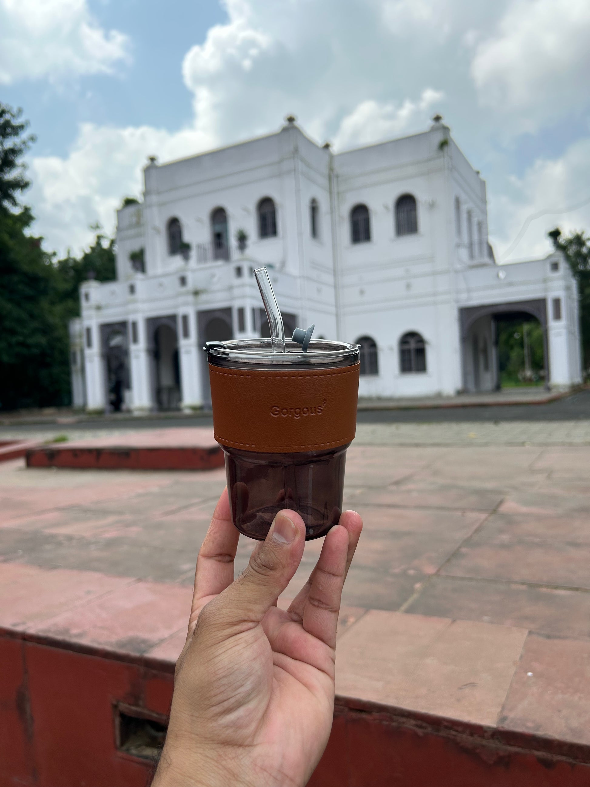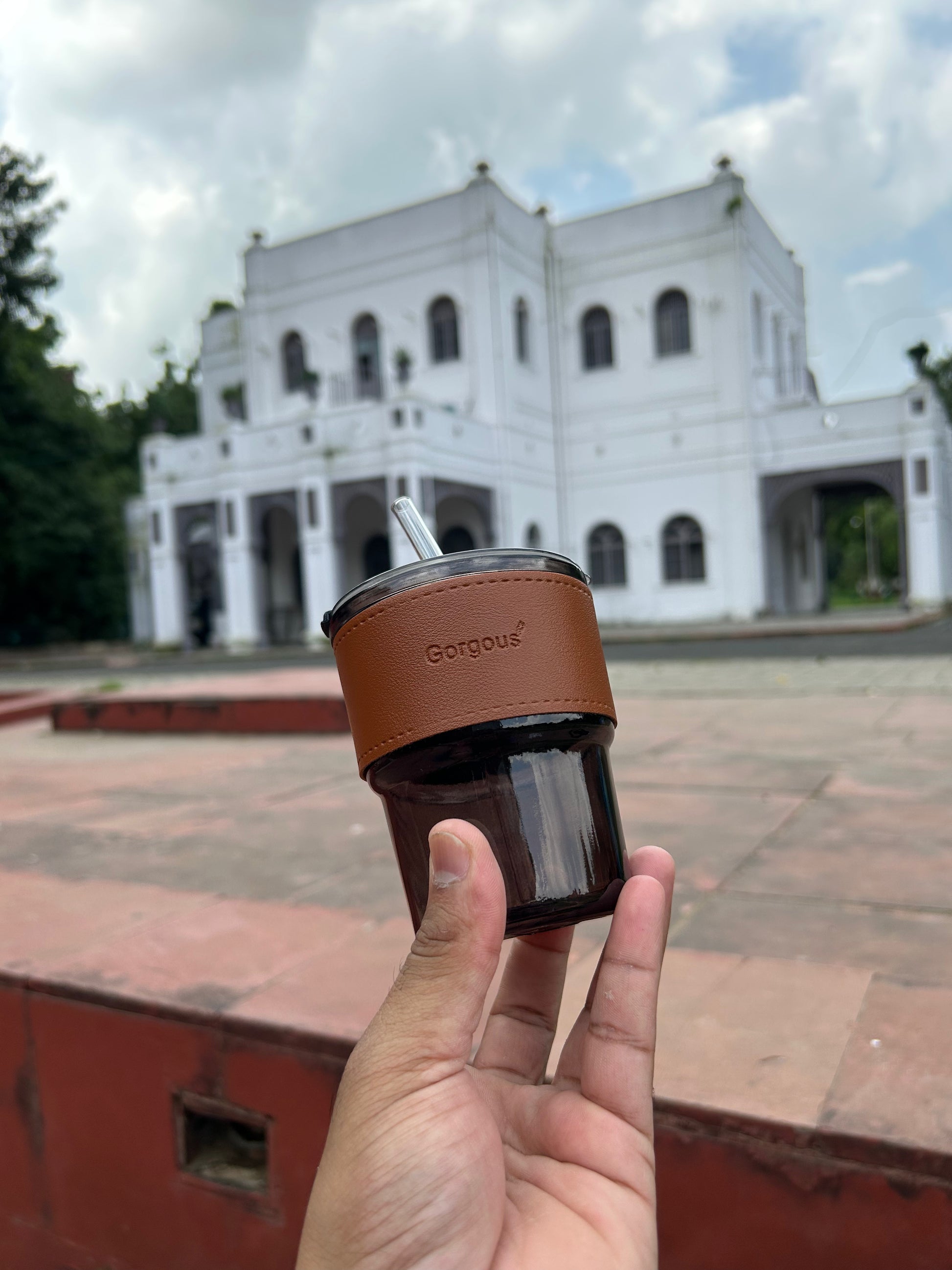 Glass Tumbler with Straw & Leather Sleeve | Glass Sipper with Anti-Skid Leather Grip | Glass Tumbler – Hot & Cold Beverage Sipper | Glass Cup with Leather Sleeve & Straw | Glass Sipper with Leather Handle – For Travel & Daily Use