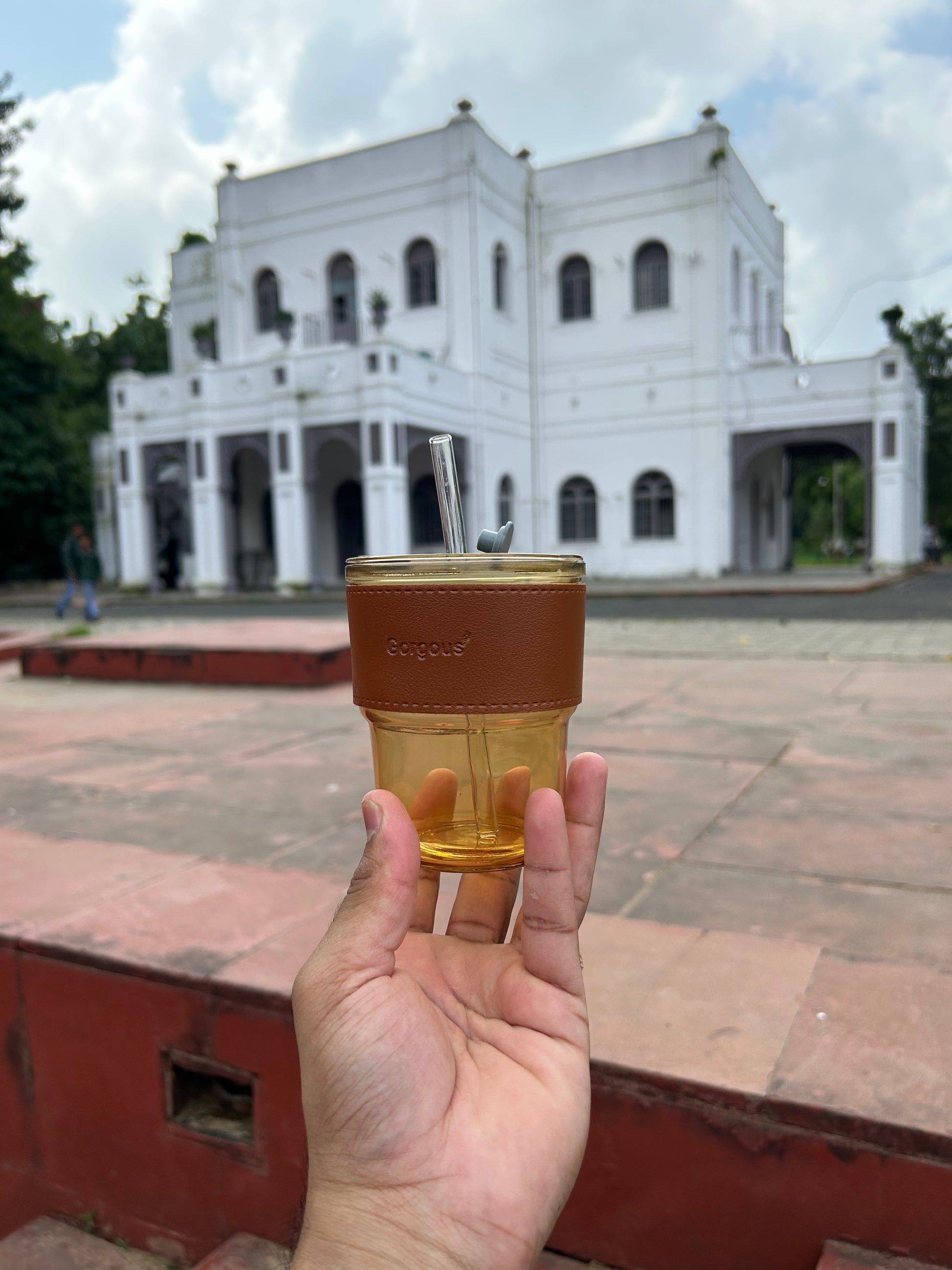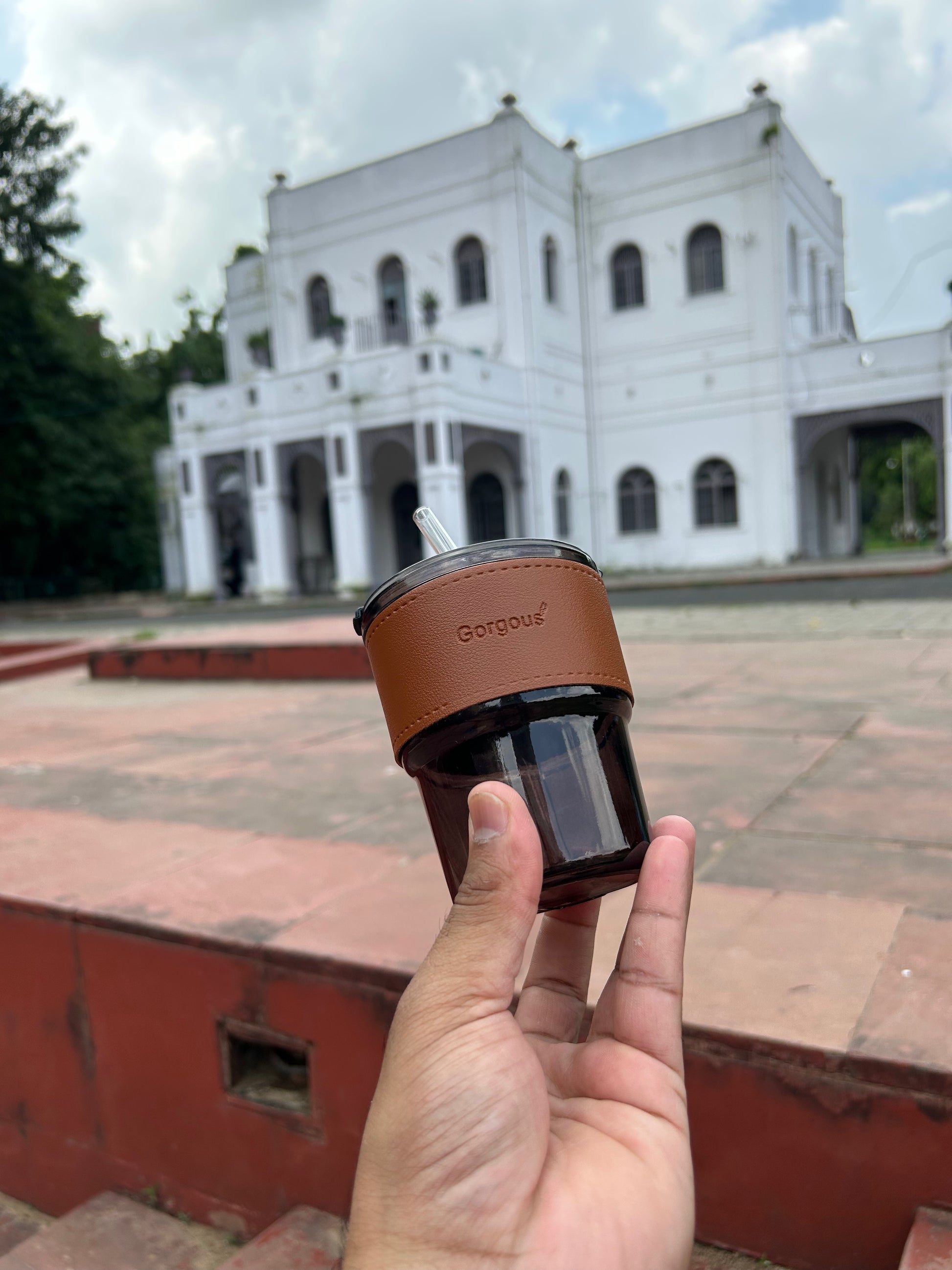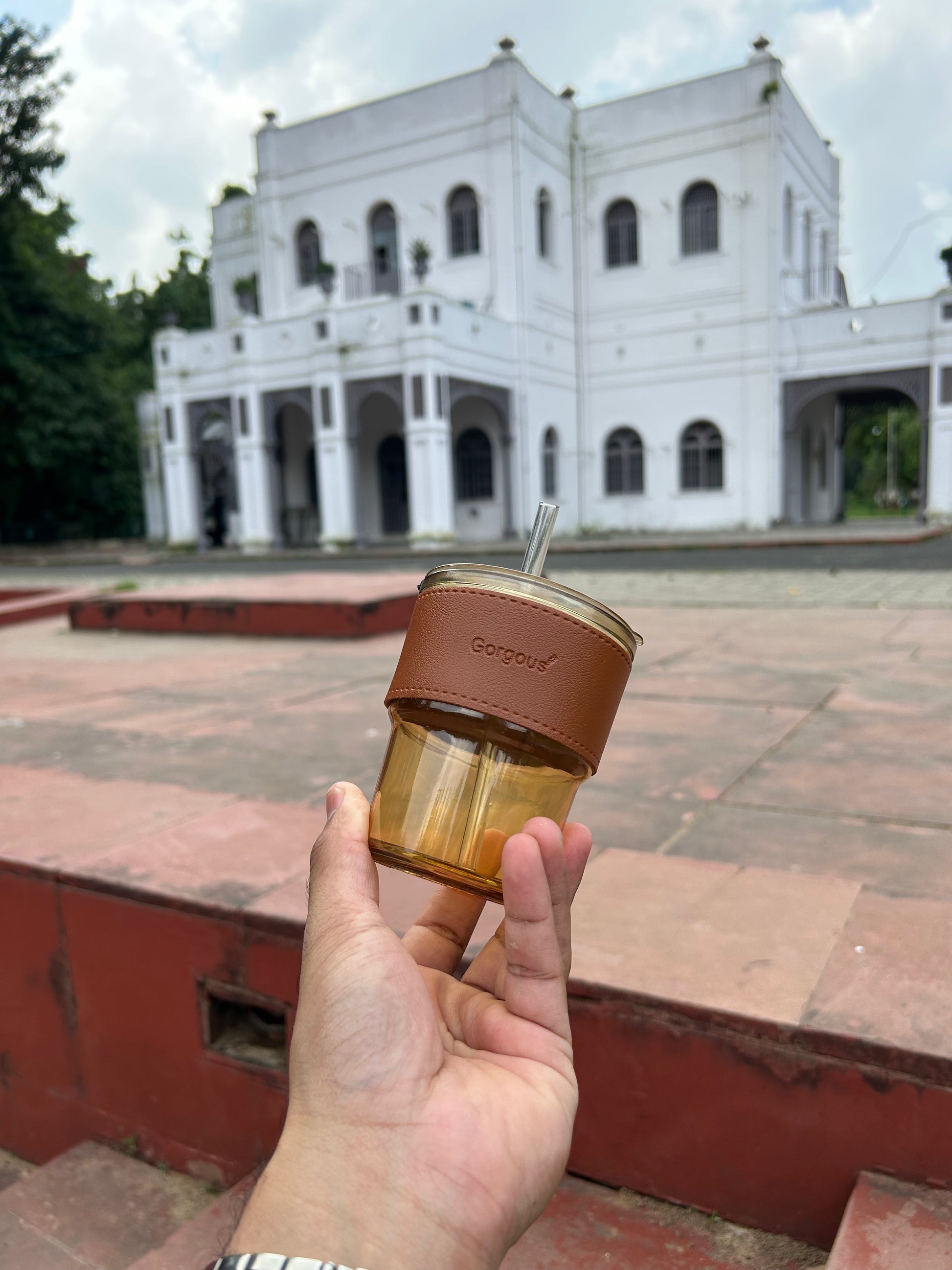 Glass Tumbler with Straw & Leather Sleeve | Glass Sipper with Anti-Skid Leather Grip | Glass Tumbler – Hot & Cold Beverage Sipper | Glass Cup with Leather Sleeve & Straw | Glass Sipper with Leather Handle – For Travel & Daily Use