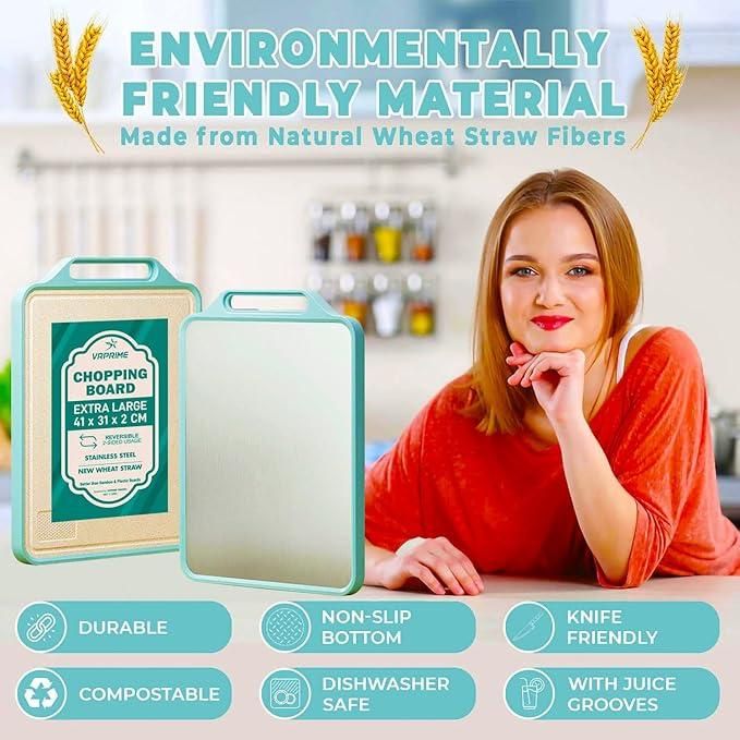 - Dual-Surface Design – Stainless steel side for meat & dough, wheat straw side for veggies & fruits